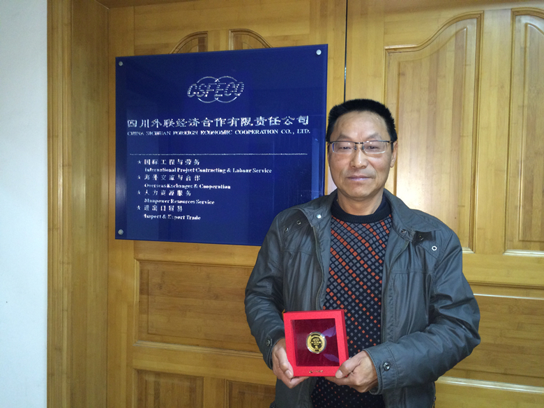 2016年猴年新春伊始,四川外聯(lián)經(jīng)濟合作有限責任公司對首位陪伴公司十年海外發(fā)展的員工黃成良先生給予獎勵,授予他一枚“十年海外貢獻獎”50克純金金幣獎章!