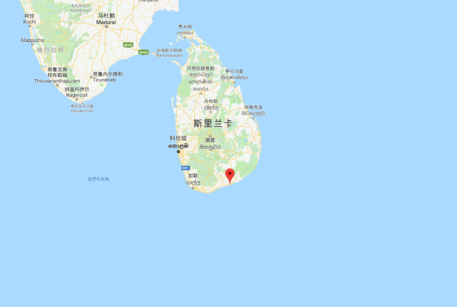 漢班托塔港位置示意圖。斯里蘭卡位于印度的東南方向。